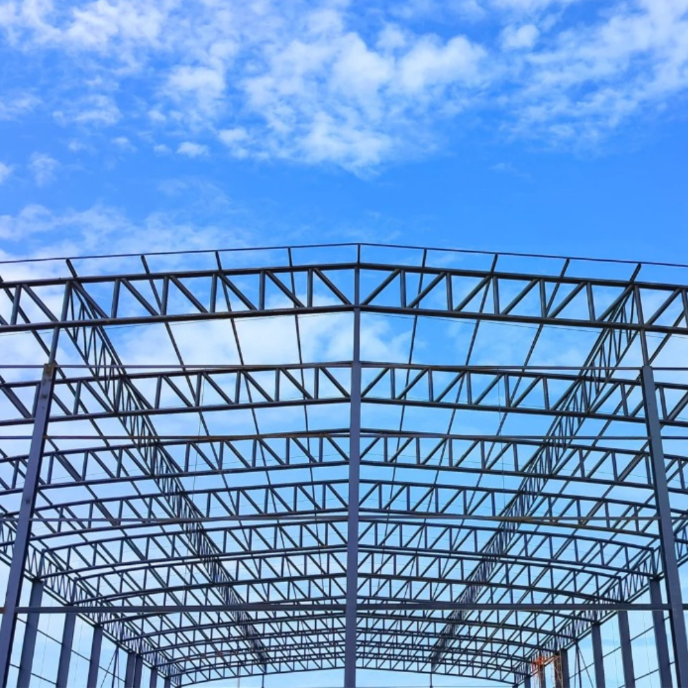 Perencanaan struktur gudang dan warehouse dengan sistem struktur yang efisien, optimal terhadap bentang, serta sesuai dengan kebutuhan operasional dan keselamatan.